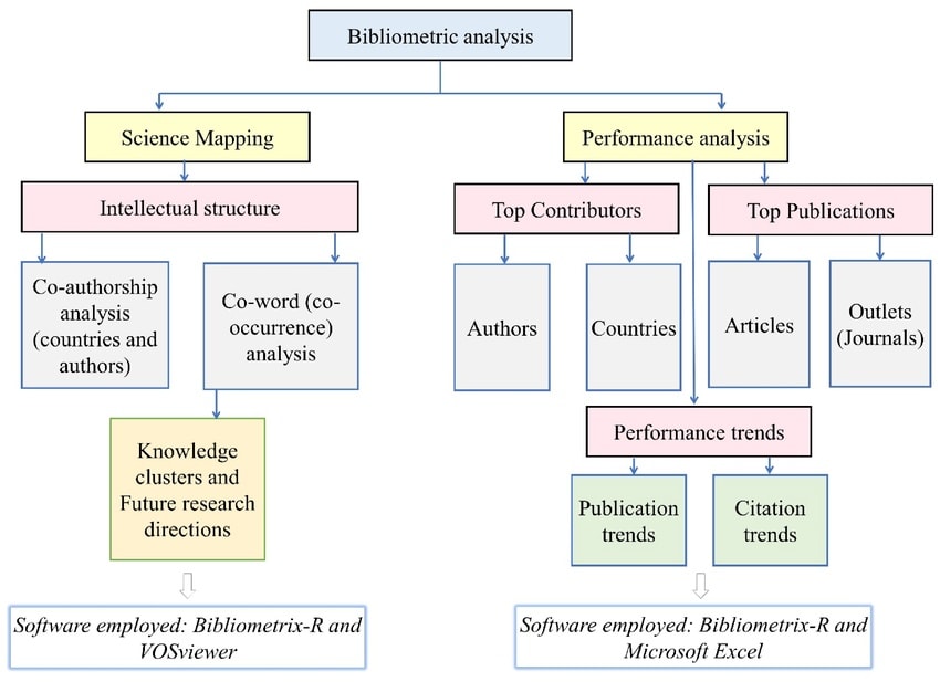 Performance analysis focuses on evaluating the productivity and impact of authors, institutions, countries, and journals. Metrics such as publication count, citation trends, and h-index provide a clear picture of performance and influence within the academic community.