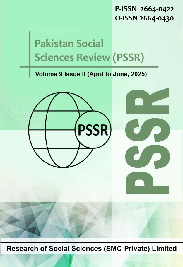 Pakistan Social Sciences Review (PSSR) is a quarterly, triple-blind peer-reviewed, open-access journal that publishes high-quality research in all disciplines of the social sciences. Addressing both theoretical and applied dimensions, the journal serves a global academic audience including universities, institutions, and individual researchers. Published by RESEARCH OF SOCIAL SCIENCES (SMC-PRIVATE) LIMITED (ROSS), PSSR fosters scholarly engagement by promoting research excellence, modern academic methods, and international discourse across the social sciences, arts, and humanities.