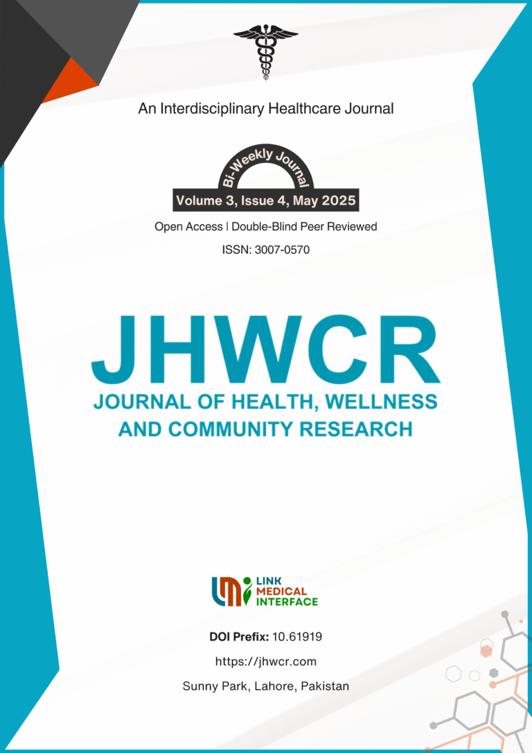 The Journal of Health, Wellness, and Community Research (JHWCR), ISSN: 3007-0570, is a peer-reviewed, open-access publication issued biweekly by the Link Transdisciplinary Institute (under Link Medical Interface, Lahore, Pakistan). Recognized in the Y Category by the Higher Education Commission (HEC) of Pakistan and acceptable for CPSP publication requirements, JHWCR promotes interdisciplinary research aimed at enhancing health outcomes and community well-being. The journal welcomes original research, reviews, case reports, and brief communications, particularly from early-career researchers and from disciplines like social sciences and humanities that intersect with health studies. JHWCR’s scope includes epidemiology and biostatistics, public and behavioral health, chronic and infectious diseases, environmental and global health, and healthcare innovations. It accepts diverse article types and upholds rigorous ethical and peer-review standards to ensure quality and academic integrity.